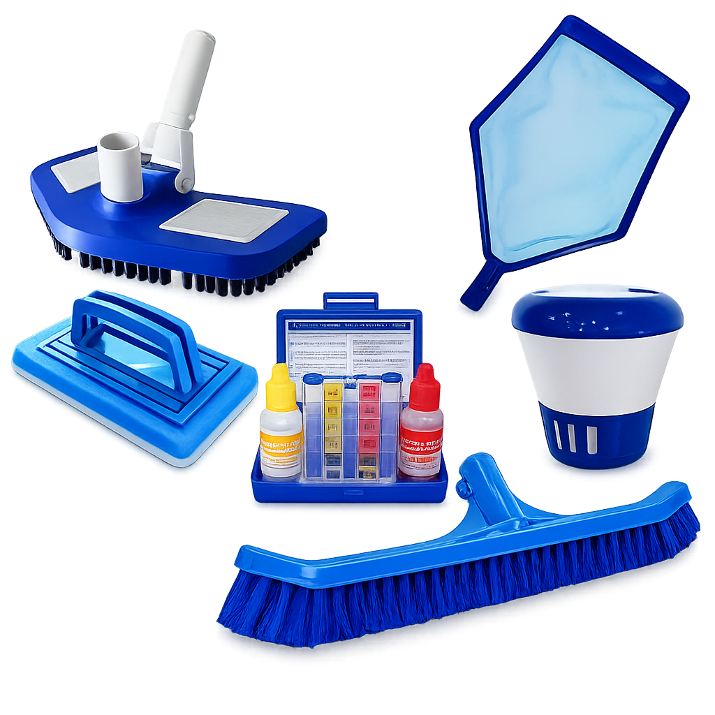 As escovas são utilizadas para a limpeza das paredes e do fundo da piscina, prevenindo o acúmulo de algas, biofilme e incrustações. Disponíveis em diferentes modelos e materiais, são indicadas conforme o tipo de revestimento, garantindo eficiência sem danificar a estrutura da piscina.