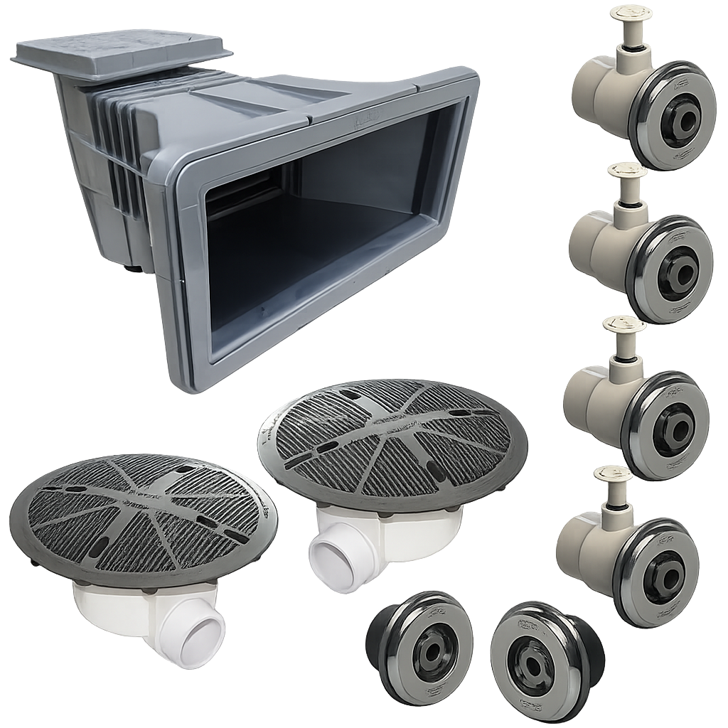 Os dispositivos de piscina são fundamentais para o funcionamento seguro e eficiente do sistema hidráulico. Trabalhamos com ralos de fundo, retornos, aspirações, dispositivos de nível e componentes de segurança que garantem circulação adequada da água, prevenção de acidentes e durabilidade da estrutura, sempre seguindo rigorosamente as normas técnicas vigentes.