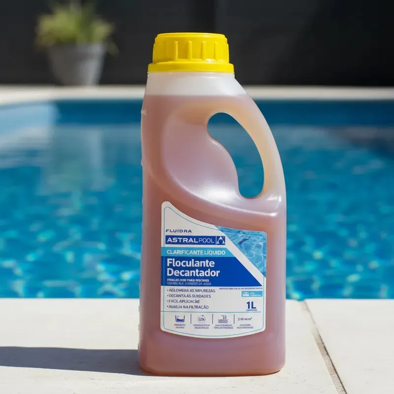 O clarificante é um produto químico utilizado para eliminar a turbidez da água, ou seja, aquele aspecto esbranquiçado ou opaco que impede a visualização do fundo da piscina.